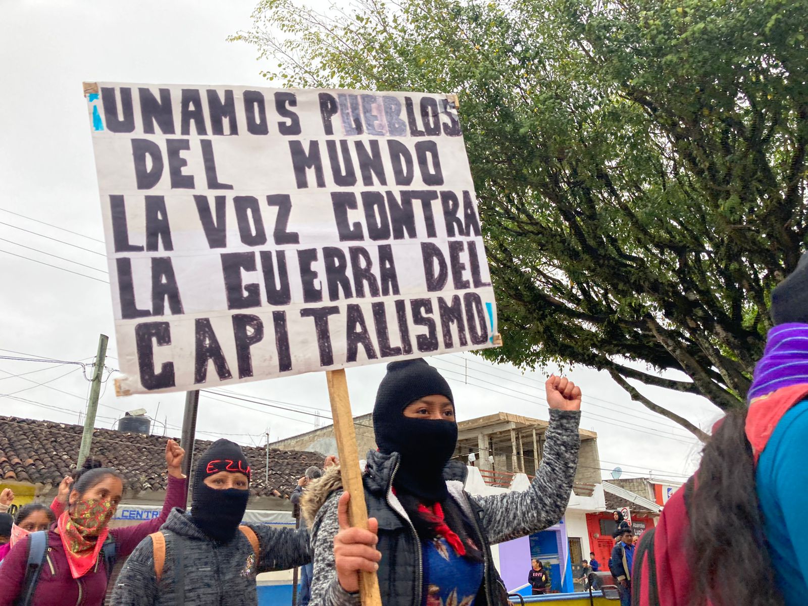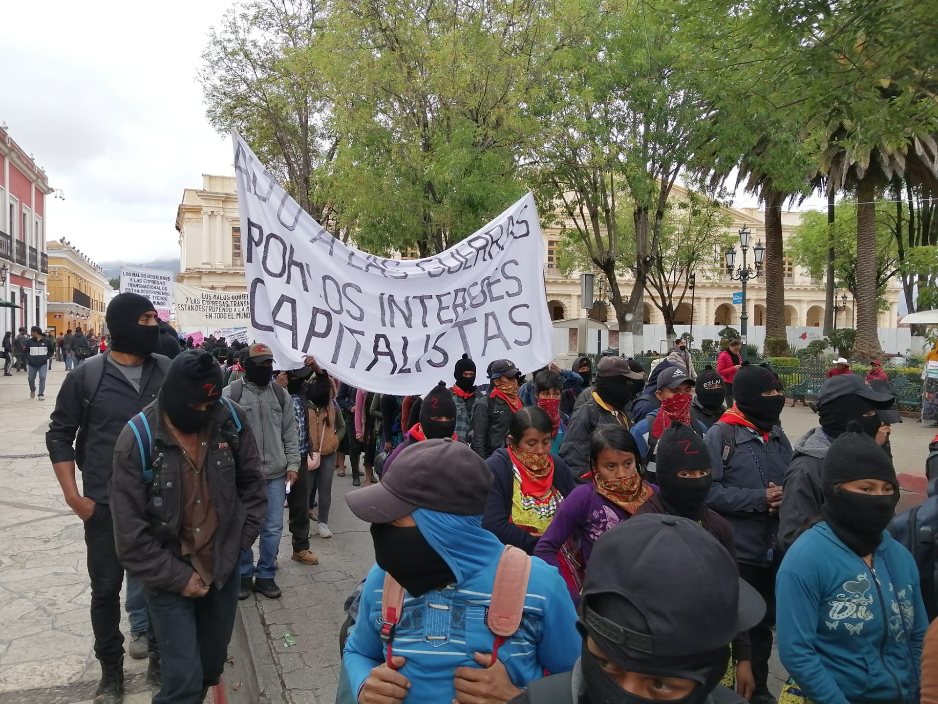 "Ούτε Πούτιν ούτε Ζελένσκι", λένε μερικά από τα πανό που μπορεί να δει κανείς σε ένα ατελείωτο ποτάμι από ζαπατίστας που κυκλώνει την πόλη την πόλη του Σαν Κριστομπάλ δε λας Κάσας.