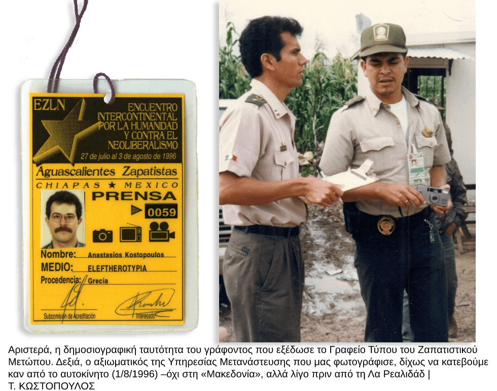 Δυόμισι δεκαετίες μετά, το σημερινό μας αφιέρωμα υπενθυμίζει εκείνο το απόμακρο ιστορικό γεγονός. Οχι μόνο για επετειακούς λόγους: την επικαιρότητά του υπαγορεύει επίσης η τρέχουσα περιοδεία των Ζαπατίστας στην Ευρώπη, με πρώτο σταθμό την Ισπανία, και η επικείμενη επίσκεψή τους στην Ελλάδα το ερχόμενο φθινόπωρο. Εκτός από εξωτερικές πηγές, όσα ακολουθούν βασίζονται επίσης σε προσωπικές σημειώσεις και αναμνήσεις, καθώς ο γράφων ήταν ο μόνος Ελληνας επαγγελματίας δημοσιογράφος που παρακολούθησε τις εργασίες της Διηπειρωτικής Συνάντησης (για λογαριασμό του «Ιού» της «Ελευθεροτυπίας», μαζί με τη δικηγόρο Γιώτα Κούτσικα, έκτακτη τότε απεσταλμένη της εφημερίδας «Εποχή»).